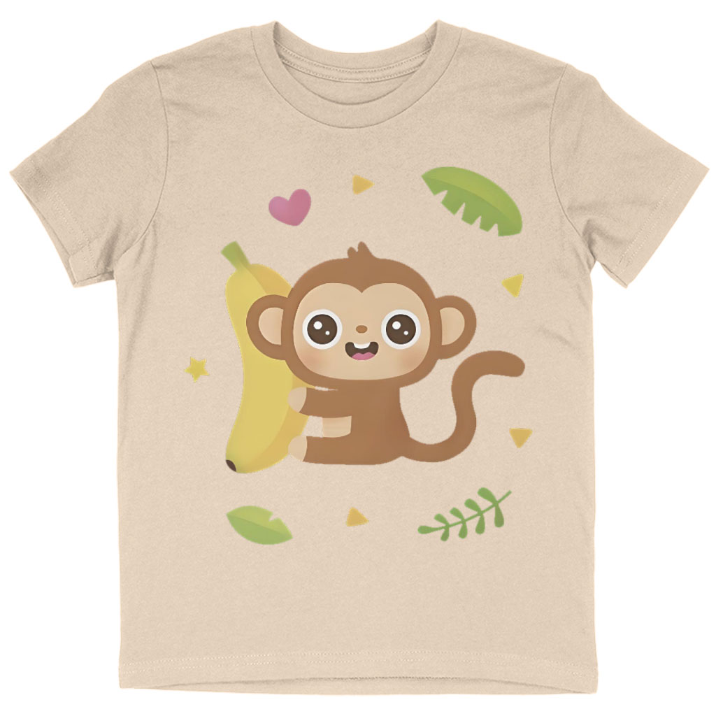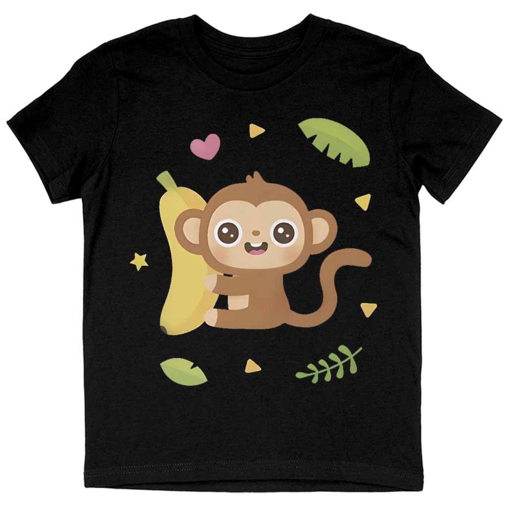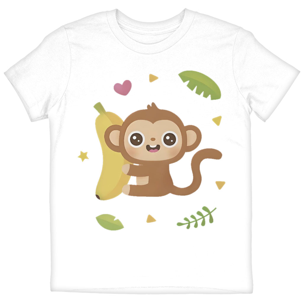 Cute Monkey and Banana Kids’ T-Shirt is no ordinary piece of clothing. Its crew neck and short