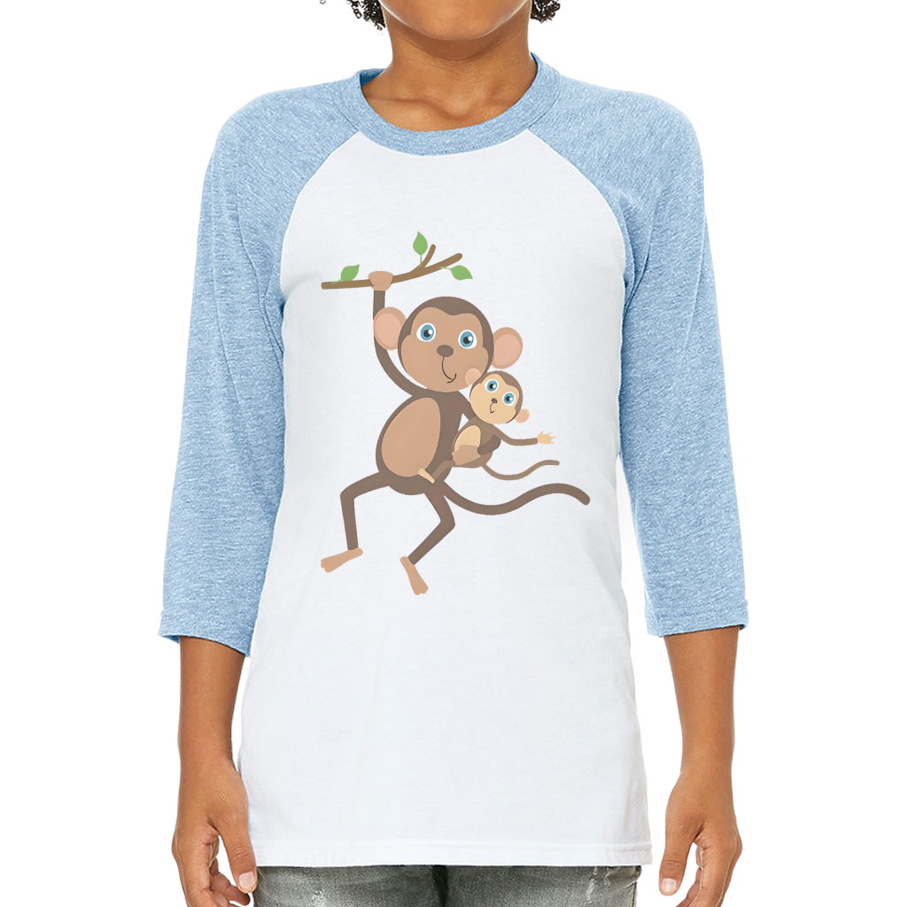 Monkey Mom and Baby Kids’ Baseball T-Shirt