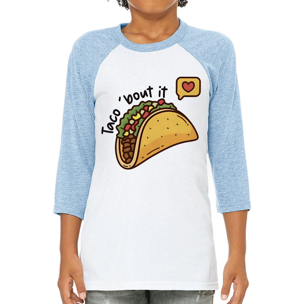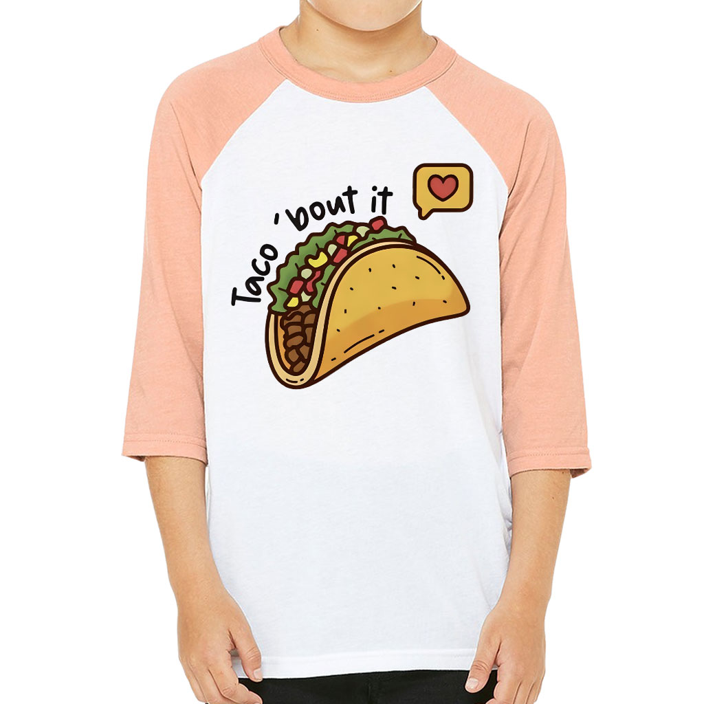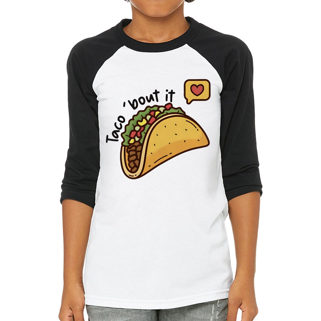 Take Taco ’bout It Kids’ Baseball T-Shirt as a perfect gift for your kid or cousin on Christmas, Birthday, or any special day.