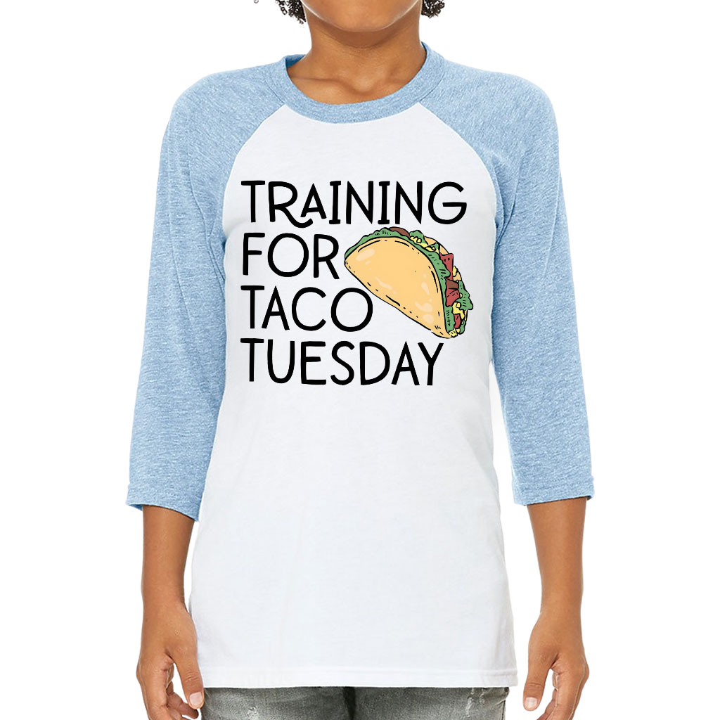 Take Training for Taco Tuesday Kids’ Baseball T-Shirt as a perfect gift for your kid or cousin on Christmas, Birthday, or any special day.