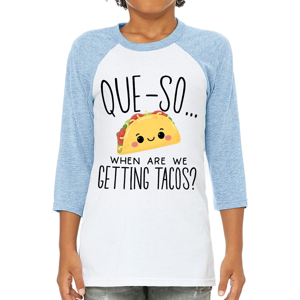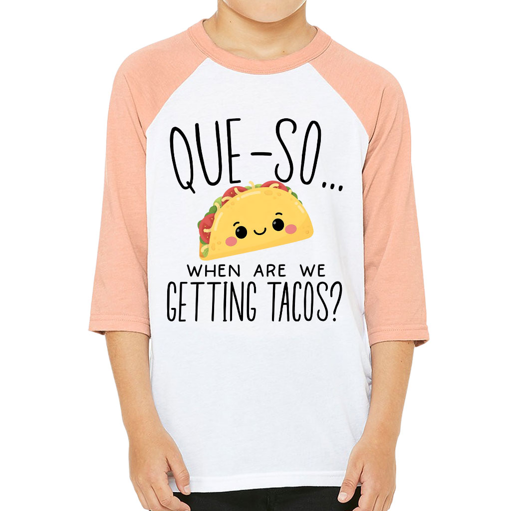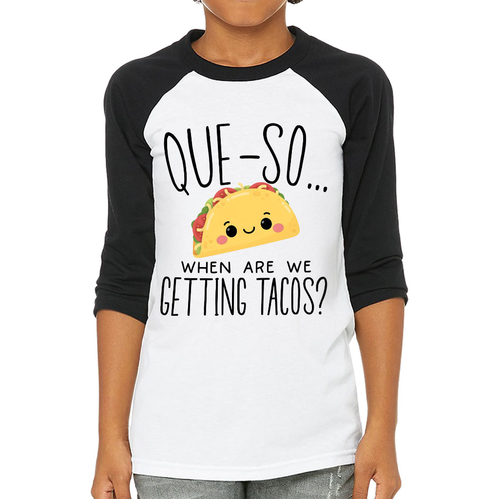 Take When Are We Getting Tacos Kids’ Baseball T-Shirt as a perfect gift for your kid or cousin on Christmas, Birthday, or any special day.